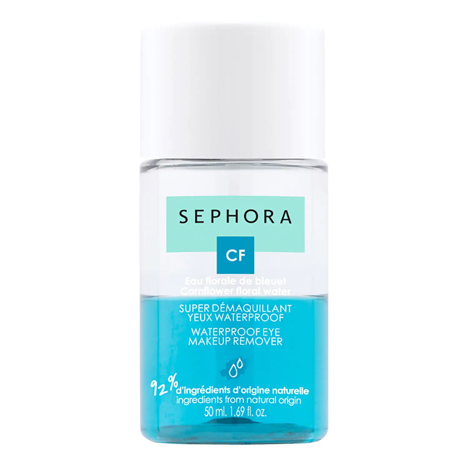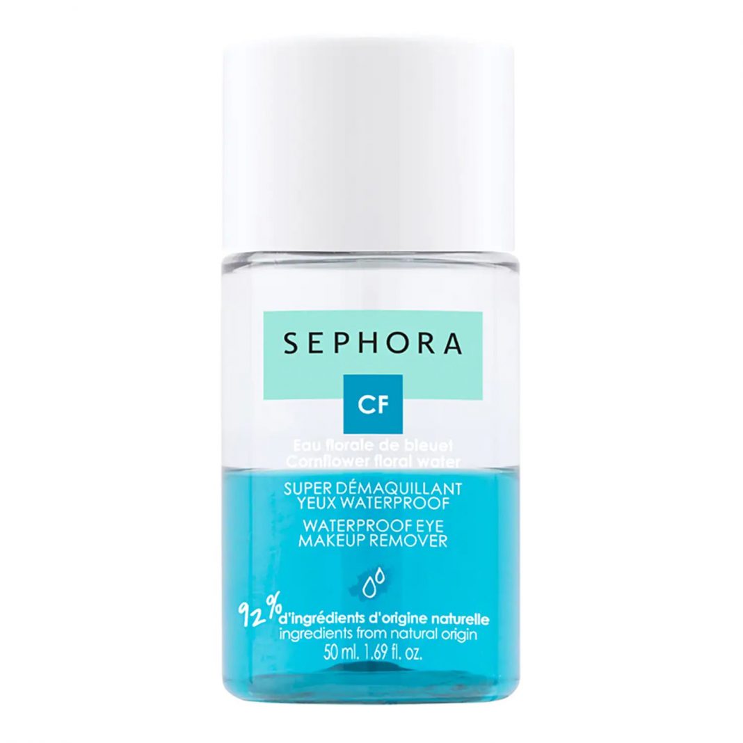 Y resistente al agua y de agua floral de aciano, formulado con un 92 % de ingredientes de origen natural, desmaquilla eficazmente todos los maquillajes, incluso los resistentes al agua. Su textura bifásica elimina inmediatamente el maquillaje de los ojos, incluso el resistente al agua, sin dejar película grasa ni dañar las pestañas. Lo tienes en Sephora por tan solo 5,99 euros.