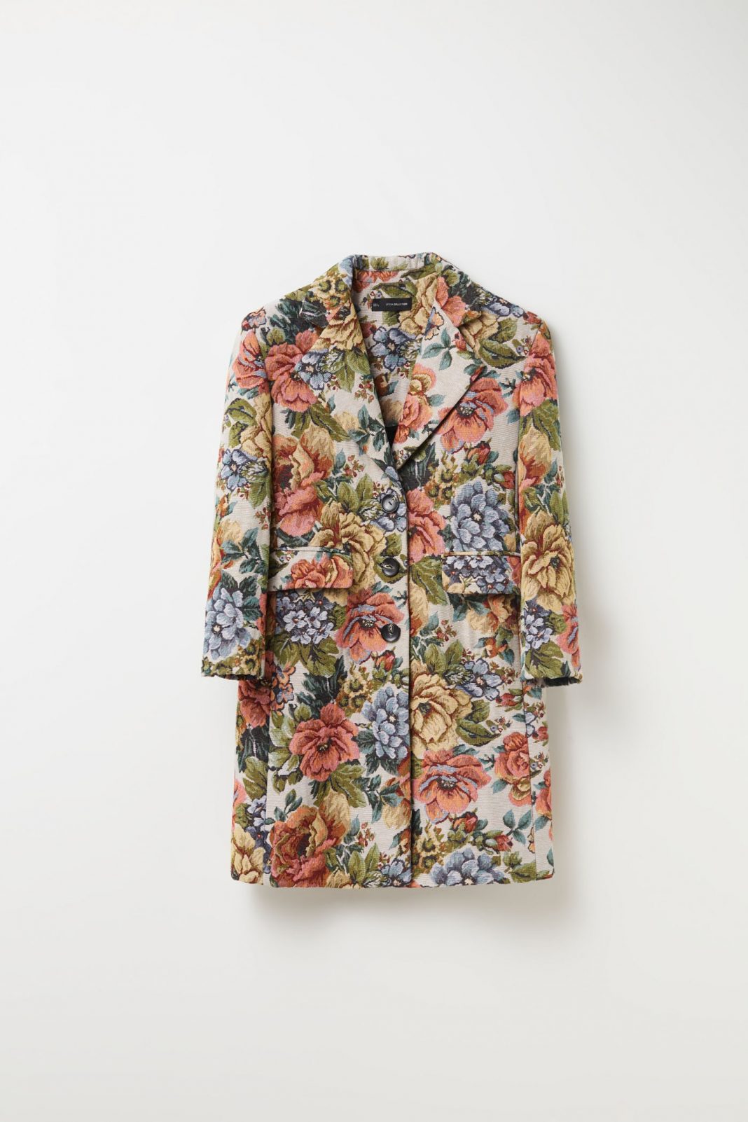 Si buscas un abrigo muy especial que te haga destacar, este es justo lo que necesitas. Es una prenda de tejido jacquard con un llamativo estampado de flores similar a un antiguo tapizado. El abrigo es de longitud media, y tiene un cuello con amplias solapa. Cierra con tres botones en la parte frontal y lleva dos bolsillos laterales de solapa. Lo puedes conseguir en Sfera por un precio de 59,99€.