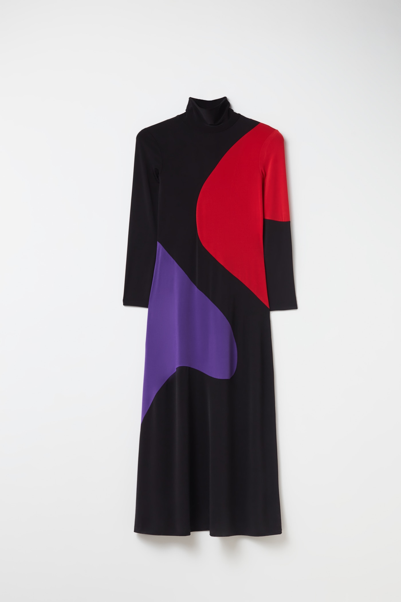 Los vestidos son siempre un acierto, en cualquier estación y época del año. Para este otoño-invierno, Sfera nos propone este elegante y original diseño de vestido largo con cuello alto, que estiliza la figura y favorece mucho. Es de poliéster y elastano y se ajusta suavemente a la silueta. Tiene un estampado muy actual de bloques de color, con tonos rojos. Una de esas prendas con las que siempre acertarás vayas donde vayas. Puede ser tuyo por 29,99€.