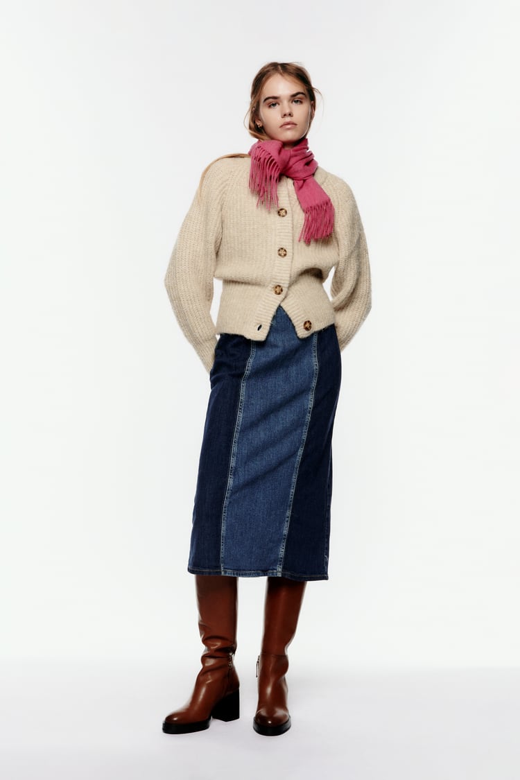 Este modelo de Zara es de inspiración clásica, con cuello redondo, manga larga y cierre frontal mediante botones de gran tamaño. Está disponible en beige y en gris, dos colores neutros muy sencillos de combinar.