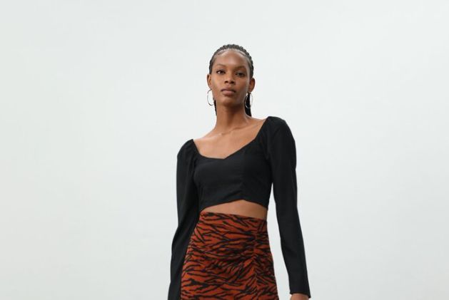 Os presentamos la última de las prendas del día de hoy de Lefties. Como estamos viendo, son muchas las posibilidades que tenemos para poder hacer un buen regalo o hacer una adquisición nueva a nuestro armario, y es que la cadena española tiene siempre un sinfín de diseños a buen precio que seguro que nos cautivarán. Es una blusa corta de manga larga con escote en pico. Tiene un elástico en la espalda y un contorno para mejor ajuste y está hecha en un cómodo tejido fluido. Está disponible en tres colores, pero sobre todo está muy bien el negro. Se puede comprar en las tallas XS, S, M y L. Además, entra en la categoría de ‘Join Life’, y es ‘Care for fiber’: con viscosa sostenible. Esta Viscosa Sostenible viene de madera de bosques gestionados de una forma sostenible que suele garantizar su reforestación. La producción consume mucha menos agua y energía que el resto. Por último, cabe destacar que también se encuentra por un módico precio final de unos 9,99 euros.