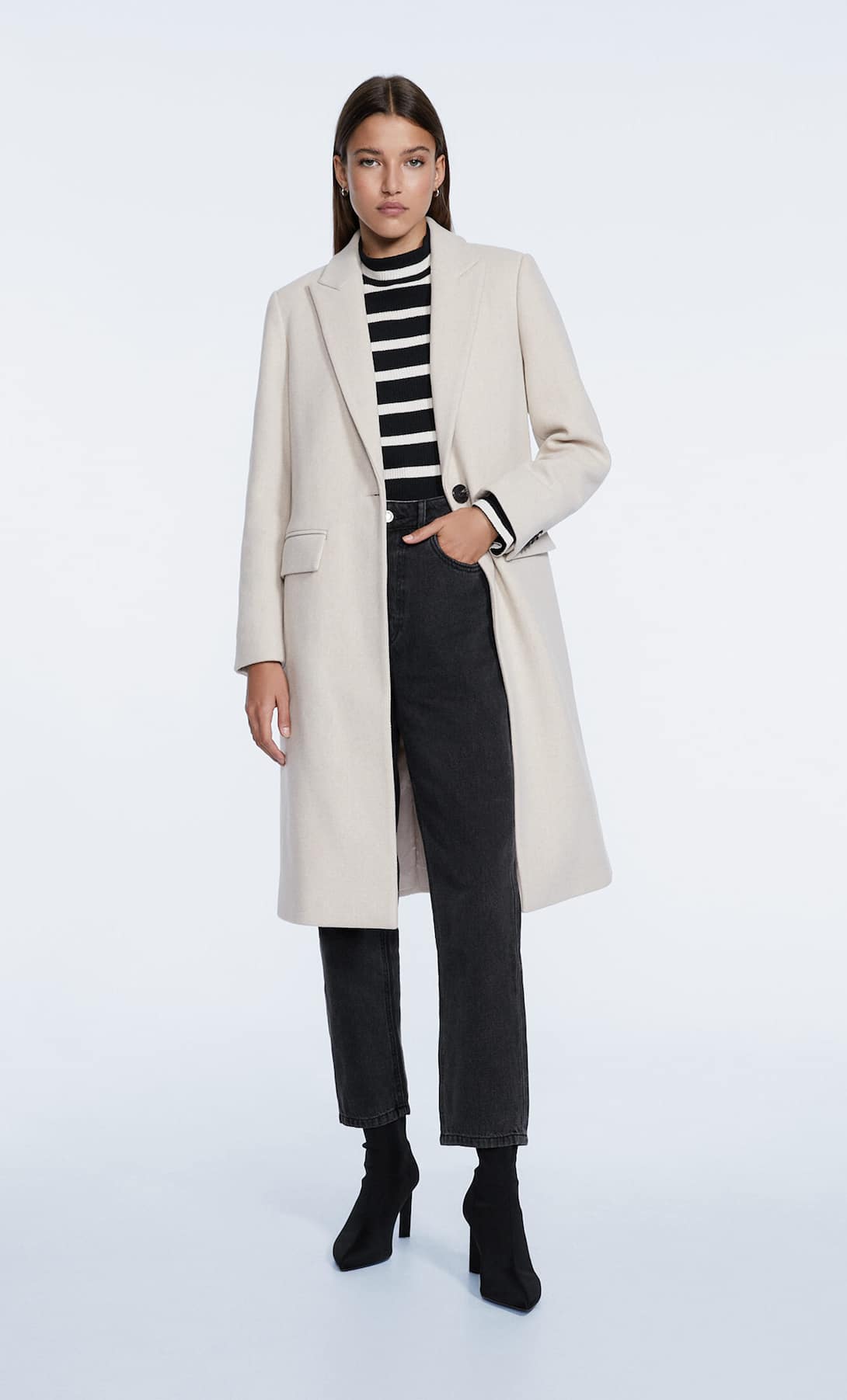 En Stradivarius encontramos este abrigo blanco a un precio realmente de ganga. Ya no deberás invertir grandes sumas de dinero para quedar maravillosa. Además, gracias al abrigo que te proporciona, no te lo querrás quitar en ningún momento de la noche. Es ideal para esas reuniones sociales donde necesitas un atuendo un poco más formal que de costumbre.
