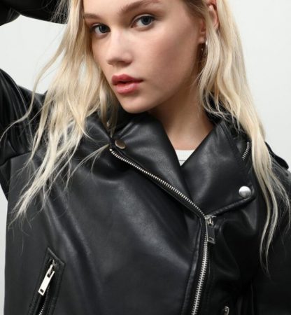 Hemos comenzado este artículo hablando de unos de los productos más llamativos de las novedades de Lefties, que tenía efecto piel. Pues qué mejor forma de cerrarlo que haciendo algo similar, aunque con un modelo de abrigo que tampoco parece pasar de moda: una cazadora cruzada de lo más “rockera” o “heavy”. No es de cuero como las de toda la vida, pero sí efecto piel, cremallera metálica y un diseño de lo más atractivo.