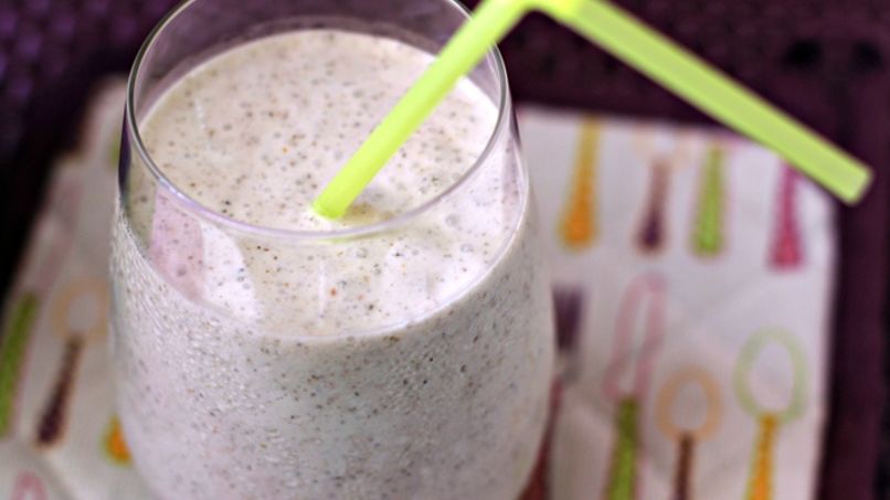 Sustituye una parte de la leche por un yogur griego. Esto le dará más consistencia al batido y le aporta lactobacilos para mejorar la digestión. También puedes añadir algunas frutas congeladas como moras o frambuesas.