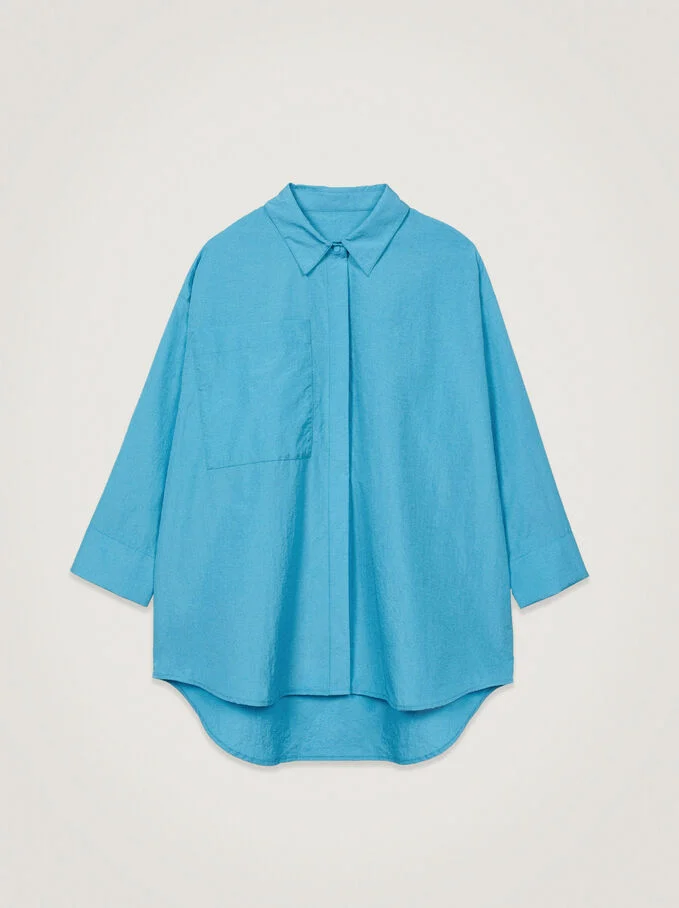 La mejor prenda para cuando no hace ni frío ni calor es la sobrecamisa, así que te traemos otra. En este caso, tenemos una sobrecamisa de nylon de color azul muy versátil. Disponible en talla única, está hecha en nylon al 100%, teniendo cierre frontal con botones y cuello de solapa.
