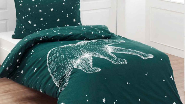 Estas fundas de edredón de estilo juvenil son perfectas para la habitación de niños y adolescentes, y están disponibles en tres modelos. Uno es el que te mostramos, con un oso polar y estrellas sobre fondo verde.