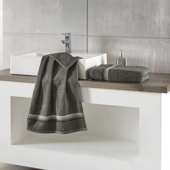 Por un poco más del precio que acabamos de ver, puedes hacerte con unas toallas que tienen una estética igual, pero se diferencian en el acabado y el tacto. Estas de acabado aterciopelado son muy suaves.