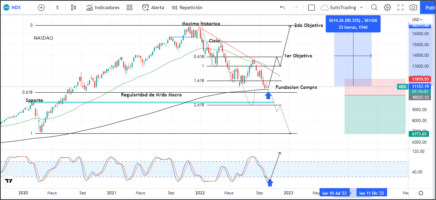 Para mejorar aún más la visión, encontramos que el índice de fuerza relativa se ubica en niveles de sobreventa con probabilidad de punto de giro al alza, en pocas palabras, desde nuestra experiencia, si la vela de gráfico semanal se ubica sobre los 11.150 en formación de pin bar, comenzaremos a meter órdenes al alza, en contra de lo que el mercado vende.