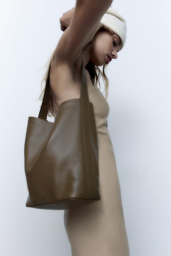 Por último, se encuentra el bolso saca piel minimal de Zara. Este es un bolso en formato saca en piel, cuenta con su interior forrado, asada de hombro y cierre mediante imán. A diferencia de los anteriores mencionados, es perfecto si lo que quieres es transportar una gran cantidad de pertenencias. Sus medidas son 36 x 30 x 13 cm. Lo cual significa que te entrará todo lo que necesitas para tu día a día. Su precio es de 99,95 euros.