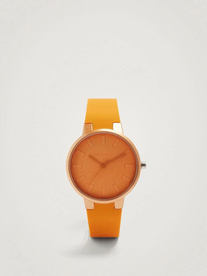 Algunos relojes de Parfois están pensados para outfits específicos, este es el caso del reloj con correa de silicona. Cuenta con diseño particular que se adaptará de la mejor manera a esas noches de fiestas y terraza con amigos. Su precio es de tan solo 29,99 euros y está disponible en color naranja y violeta. Por otro lado, su brazalete está fabricado en un 100% en silicona.