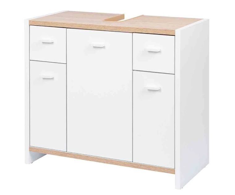 En Lidl podemos encontrar todo tipo de mobiliario a precios excelentes y con diseños bonitos, elegantes y actuales. Si necesitas renovar el baño, aprovecha la oportunidad con este armario bajo en color blanco mate y tono roble, una combinación moderna y muy bonita. Tiene 2 amplios cajones y 3 puertas, con una gran capacidad para almacenar toalla y accesorios. Tienen un revestimiento de resina de melamina resistente y fácil de limpiar y en la parte de abajo lleva protectores suaves para no dañar el suelo. Las medidas son 55,6x28x60 cm (largo, fondo, ancho) y el precio es de 44,99€.