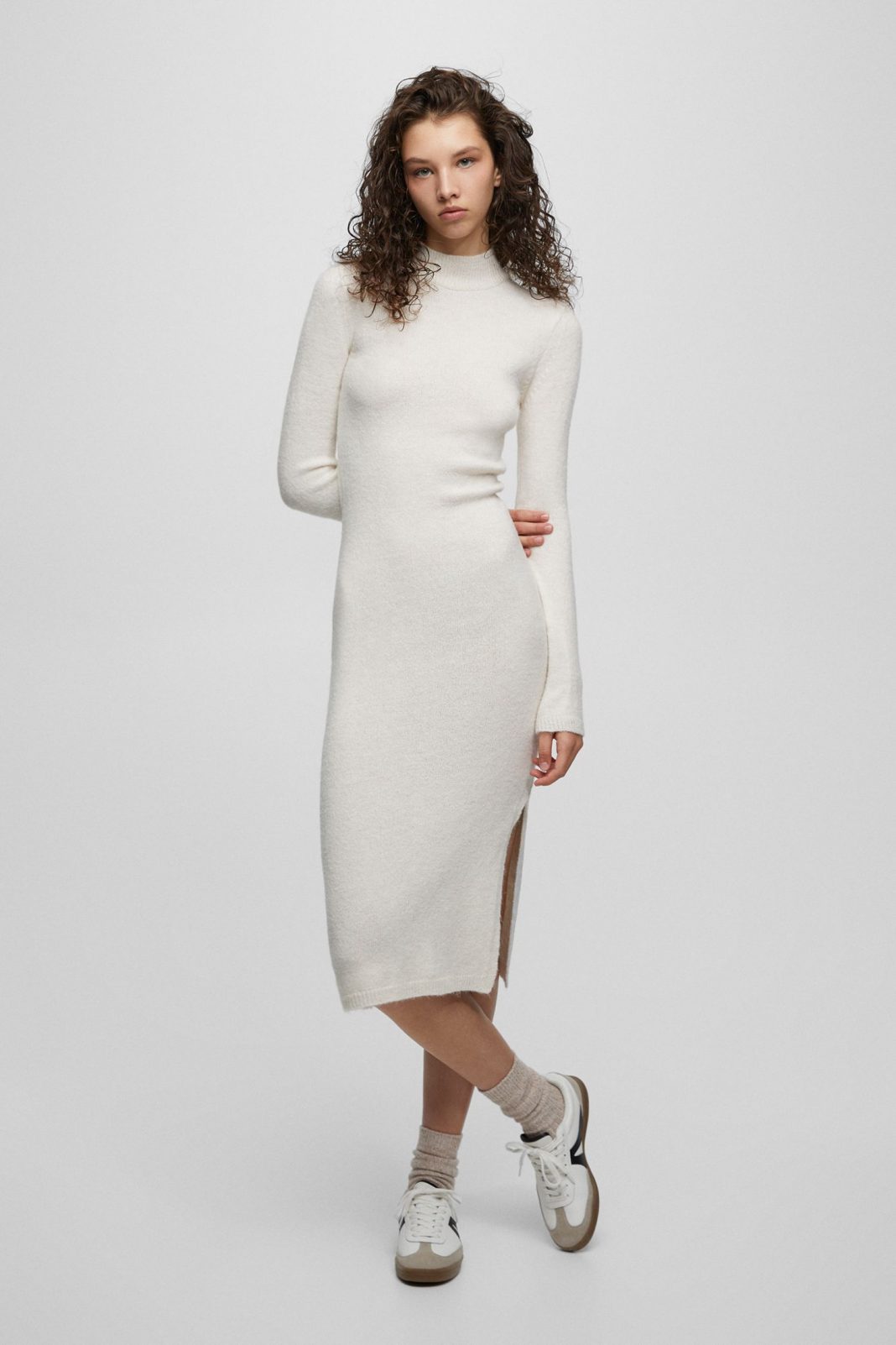 Ir a la moda y pasar frío no es imposible. Antes muerta que sencilla, el típico comentario que se ha popularizado debido a que se ha implantado en el acervo social que la ropa de lujo y que está en tendencia no puede cubrir todas nuestras necesidad. Sin embargo, siempre existe la excepción que rompe la regla, como es el caso de este vestido punto cuello perkins de Pull&Bear que sólo cuesta 29,99 euros. Tiene un diseño skinny que perfila la silueta, un tejido compuesto de poliéster y un largo por debajo de las rodillas. A continuación, te vamos a enseñar otros vestidos que puedes comprar en Pull&Bear.