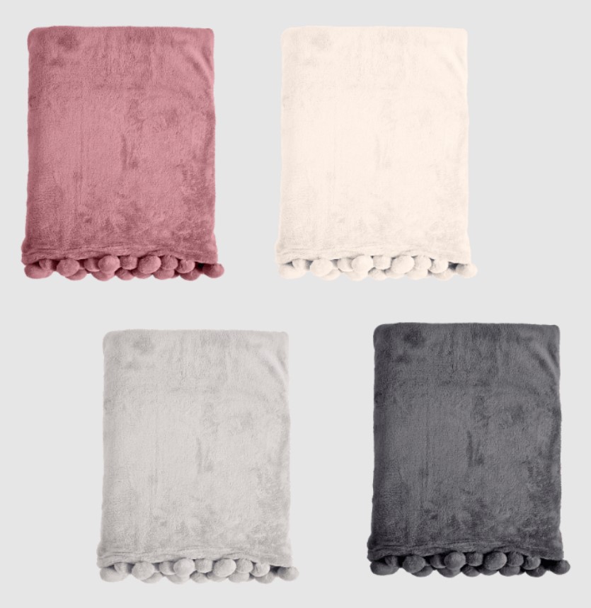 Olvídate de no poder dormir por tener los pies fríos con esta manta de pompones que está en oferta en Aldi. El material con que está confeccionada es un tejido ‘coral fleece’, de tacto suave. El tamaño que tiene es de 130 x 170 cm. Disponible en diferentes colores y a un precio increíble de 11,99 euros. Es una manta ideal para cubrirte por las noches en la cama o en el sofá mientras miras televisión.