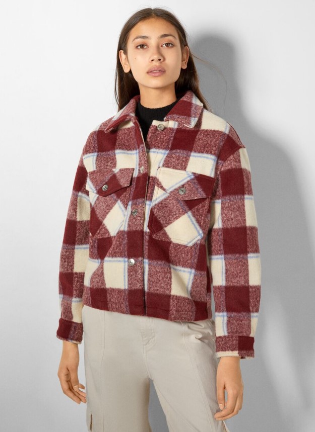 Seguimos viendo chaquetas de Bershka muy modernas y juveniles para usar esta temporada de otoño/invierno. Vimos esta cazadora trucker a cuadros con cierre mediante botones. Este estilo lleva el nombre de “camioneros” (truckers, en inglés), porque fueron quienes hicieron de él un uniforme destinado para el trabajo. En un principio, se alzó como una chaqueta de mezclilla, fina y con una estética muy parecida a la de las camisas, es decir, cuentan con un cuello y bolsillos delanteros en un formato similar. Está a la venta en dos colores, granate y crudo, en las tallas que van desde el XS al L. Cuesta 29,99 euros.
