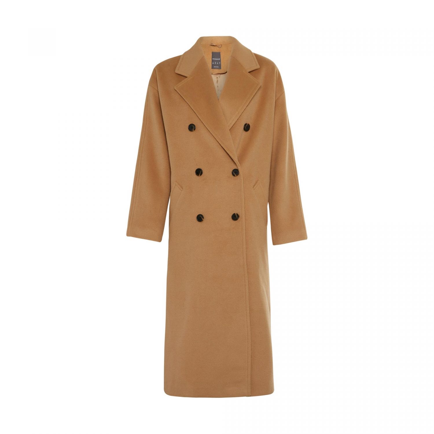 Se trata de este abrigo de corte clásico en un bonito color camel. Con solapa grande y sistema de cierre mediante doble botonadura a contraste. Bolsillos en los laterales y un diseño largo y un poco holgado.