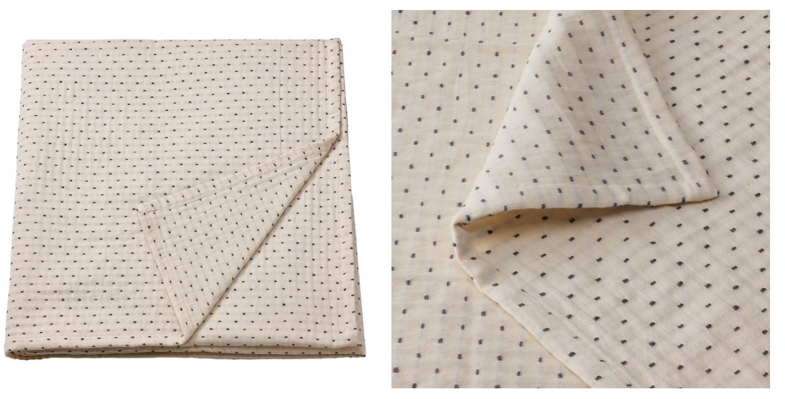 Esta colcha de Ikea es de color blanco roto con un motivo decorativo pespunteado en gris oscuro. Aporta un toque acogedor e informal al dormitorio. Es de algodón natural de tacto suave y combina fácilmente con otros cojines y productos de ropa de cama del surtido. Se puede utilizar como colcha para una cama individual o como manta. Mide 150×250 cm. Y cuesta 19 euros.