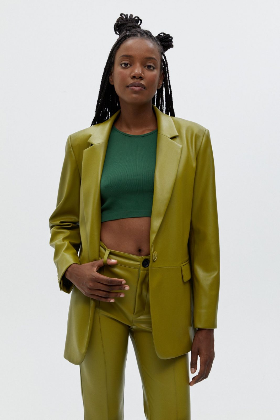 A todas nos pasa que, por comodidad y por no pasarnos horas delante del ropero para elegir las prendas, solemos caer en la costumbre de recurrir a colores como el negro o azul marino, que suelen funcionar, pero que hace que nuestros outfits sean repetitivos y sin ningún tipo de gracia. Por ello, te recomendamos que te compres esta blazer efecto piel bolsillos por 35,99 euros, una prenda con la que vas a triunfar cien por cien. Tiene un cuello de solapa, un tejido efecto piel, un color verde pistacho que combina a la perfección con el otoño y un diseño slim fit.