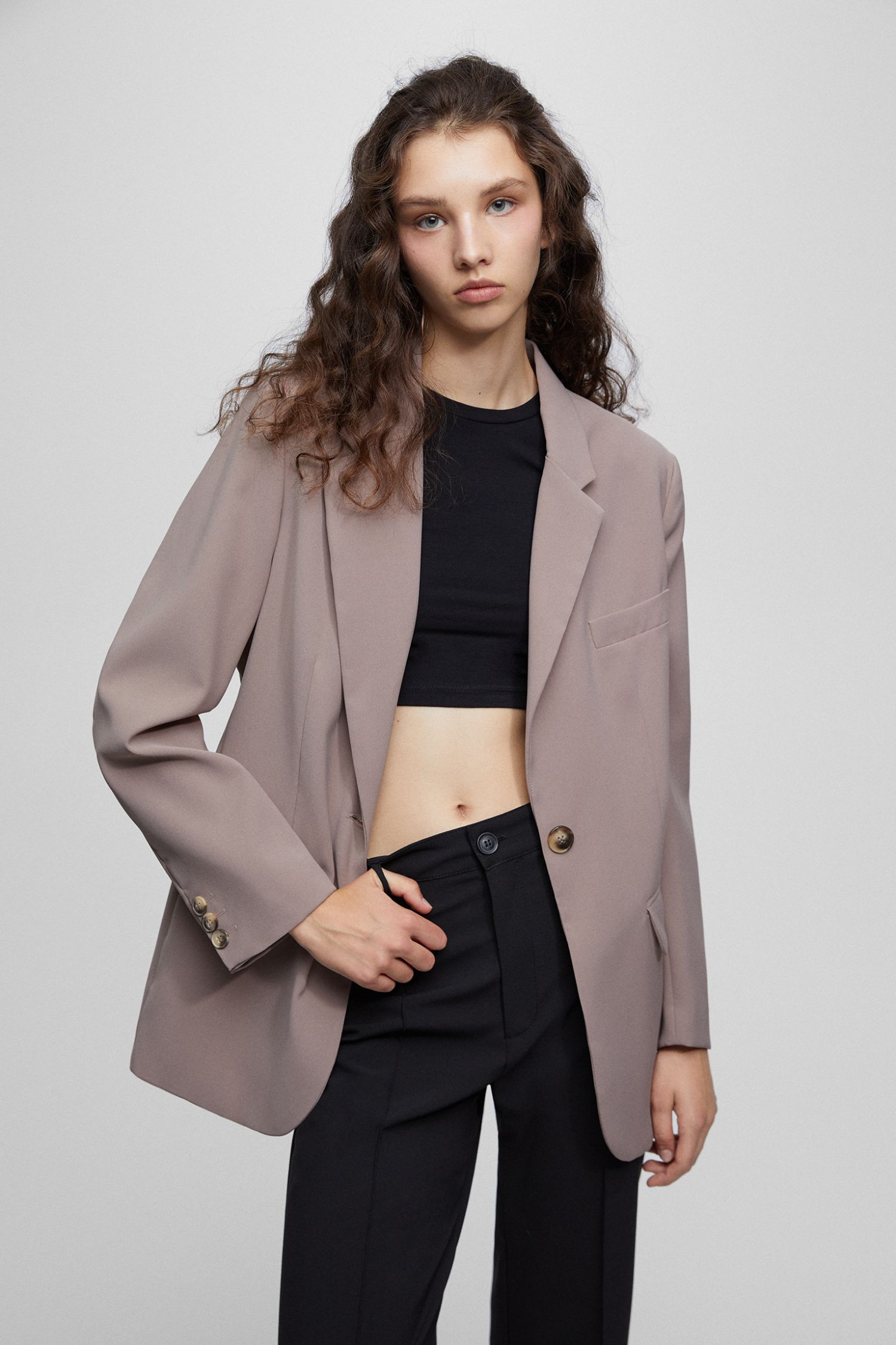 Para terminar la lista de las americanas que son unas verdaderas joyas de la colección de otoño de Pull&Bear, tenemos la blazer botón que puedes comprar en la tienda online o en los establecimientos de la marca por tan sólo 39,99 euros. Los diseñadores que han confeccionado esta prenda lo han bordado, consiguiendo dar una nueva vida a un modelo minimalista gracias a su diseño oversize, es decir, con los hombros caídos y dándole anchura a la pieza.