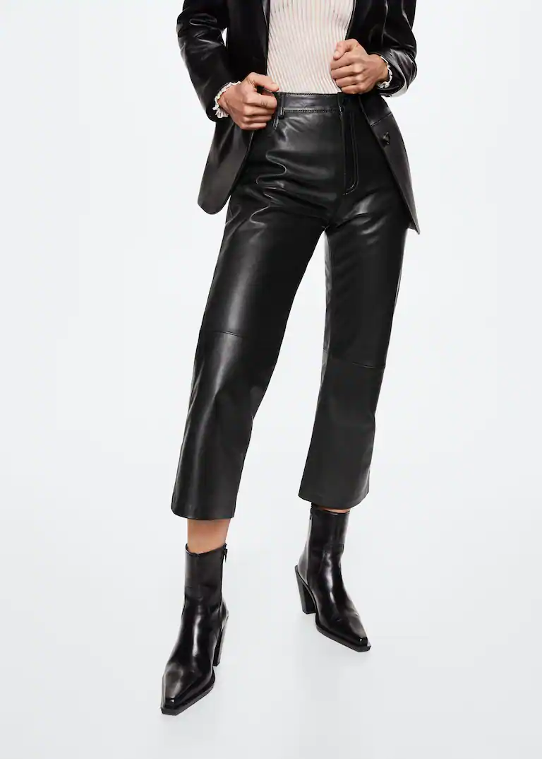 Si estás buscando un pantalón que te sirva para los días más fríos, este de la colección Selection de Mango confeccionado con tejido Premium de 100% piel de ovino, forro de 100% piel poliéster, diseño boot cropped, cinco bolsillos, trabillas para cinturón y cierre de cremallera y botón, es perfecto para ti. Su diseño elegante y atemporal y, gracias a su gran calidad, es una prenda que te durará muchos años. Su precio es de 169,99 euros.