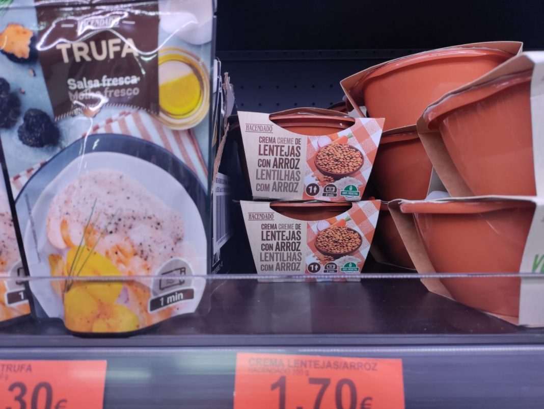 Al igual que con la crema de calabaza y zanahoria, viene en un formato de 350 gramos para una sola persona, el cual se calienta al microondas en 3 minutos. En cuanto al precio, es de 1,70 euros la ración.