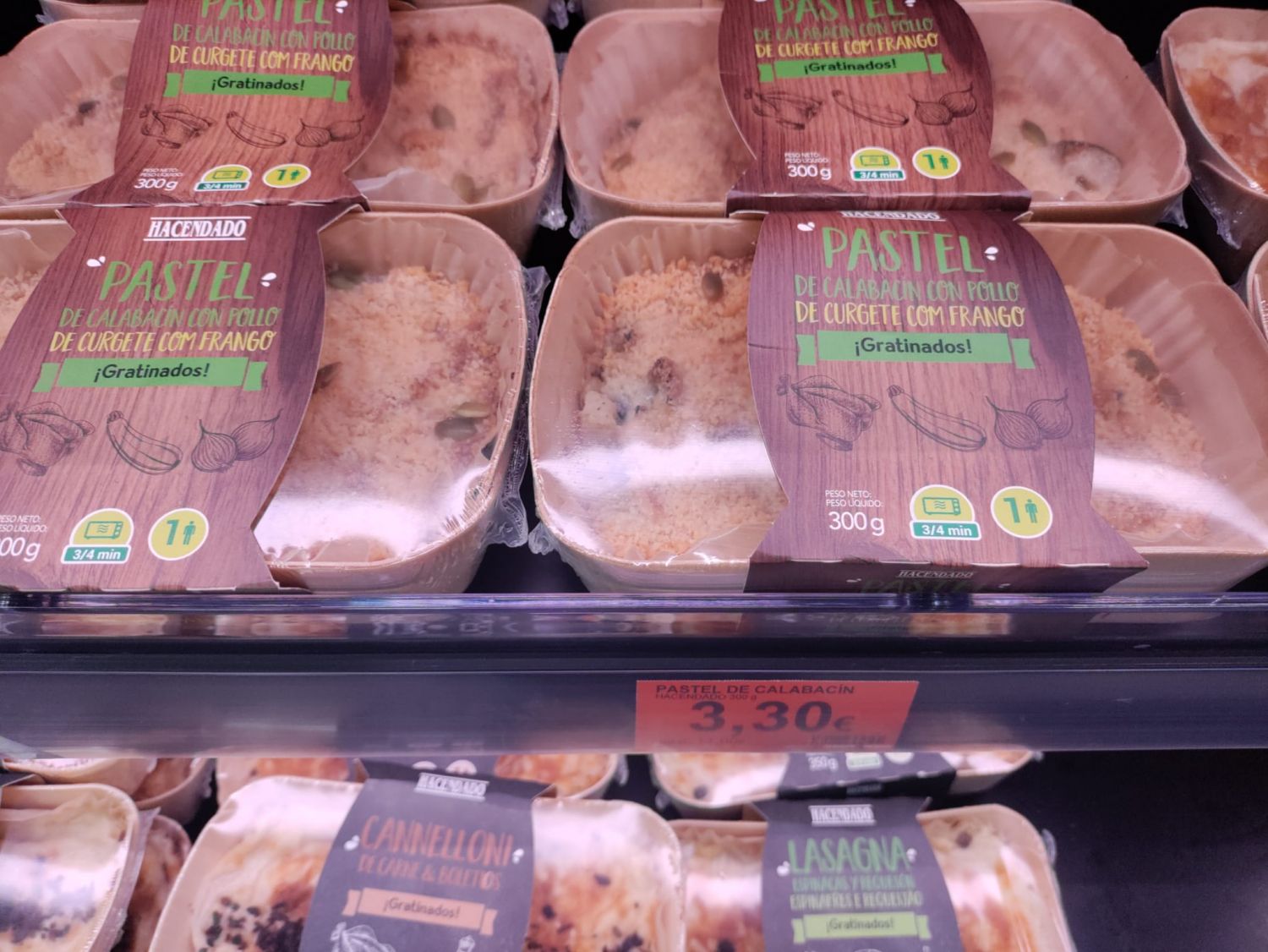 Te viene en un formato de 300 gramos para una sola persona, el cual se puede calentar en el microondas en unos 4 minutos. Esta ración se puede consumir en el mismo plato, al ser idéntico al de la lasaña boloñesa. En cuanto al precio, es de 3,30 euros la unidad.