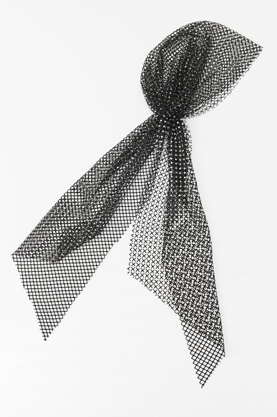 No cabe duda de que los accesorios para el pelo y la cabeza consiguen estilismos con mucha clase; sin embargo, no todo el mundo se atreve con ello. Si te apetece sobresalir, échale un ojo a este fantástico turbante tipo casquete, con un tejido de poliéster y elastano. Es un turbante tipo red de color negro con aplicaciones de brillos plateados. Causa sensación en tus looks de noche con este detalle original y único, disponible en Zara. Puedes llevártelo por 29,95€.