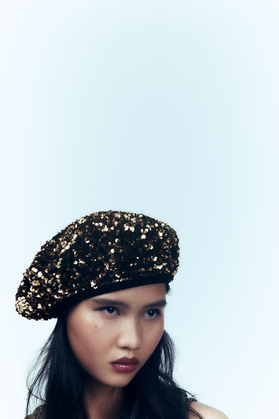 Esta boina es otro accesorio para cubrir la cabeza esta temporada y complementar nuestros looks de otoño e invierno con mucho glamour. Es de poliéster, con un diseño clásico de boina holgada, decorada con aplicaciones de lentejuelas que le dan el toque especial. No cabe duda que los brillos van a ser son los grandes protagonistas de los próximos meses. Puede elegir entre dos colores: negro y dorado. El precio de este precioso complemento de Zara es de 17,95 €.