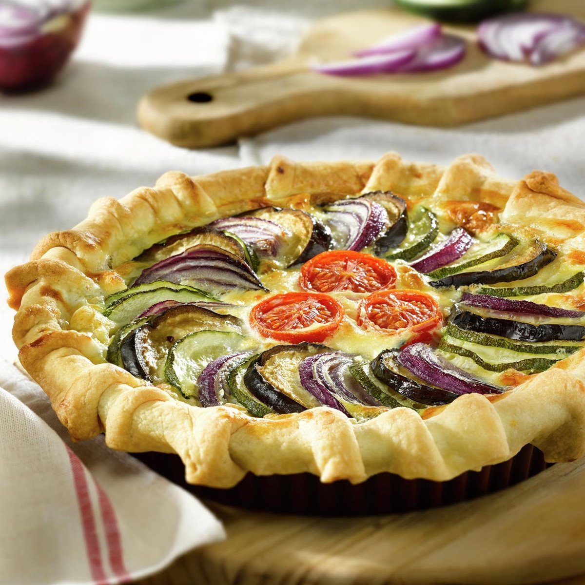 Las tartas saladas son una alternativa rápida y sabrosa a la omnipresente pizza y a la nuestras clásicas empanadas, que son una delicia, pero requieren tiempo en su preparación. Esta receta se prepara en unos pocos minutos con ingredientes tan saludables como el calabacín y la cebolla. Es perfecta para improvisar una cena informal y servir como primer plato, o bien para una comida rápida ligera y saludable, acompañada con una ensalada o una rica crema de verduras.