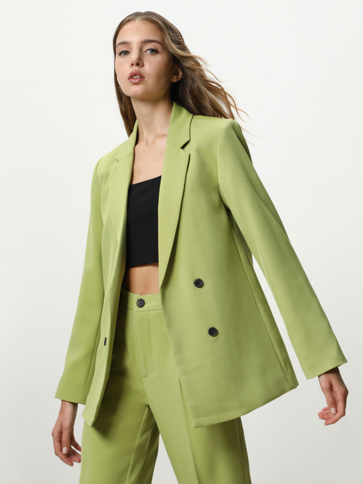 Las chaquetas estilo blazer reúnen muchas cualidades, empezando por el hecho de servir casi para cualquier ocasión. Este modelo en particular tiene un diseño relativamente amplio, doble botón y manga larga con hombreras. Uno de esos aspectos que podrían definirse como “clásicos” y que parecen no dejar de estar de moda o ser tendencia nunca.