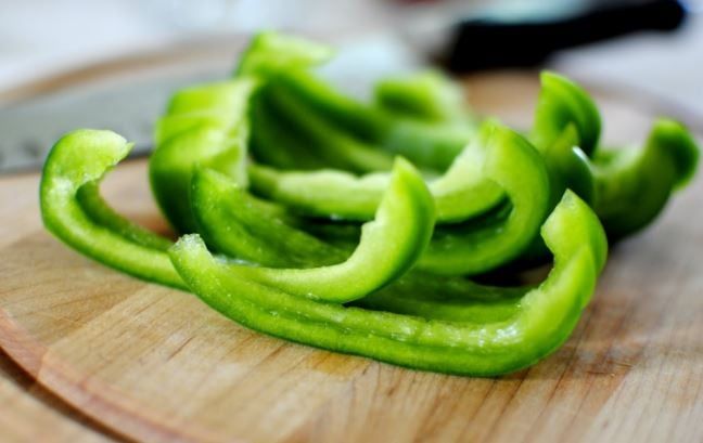 Cuando esta esté completamente dorada, habrá que introducirle el pimiento cortado de la misma manera. Para que los alimentos no se quemen, se podrá hidratar con un poco de agua o caldo, en el caso de que sea necesario.