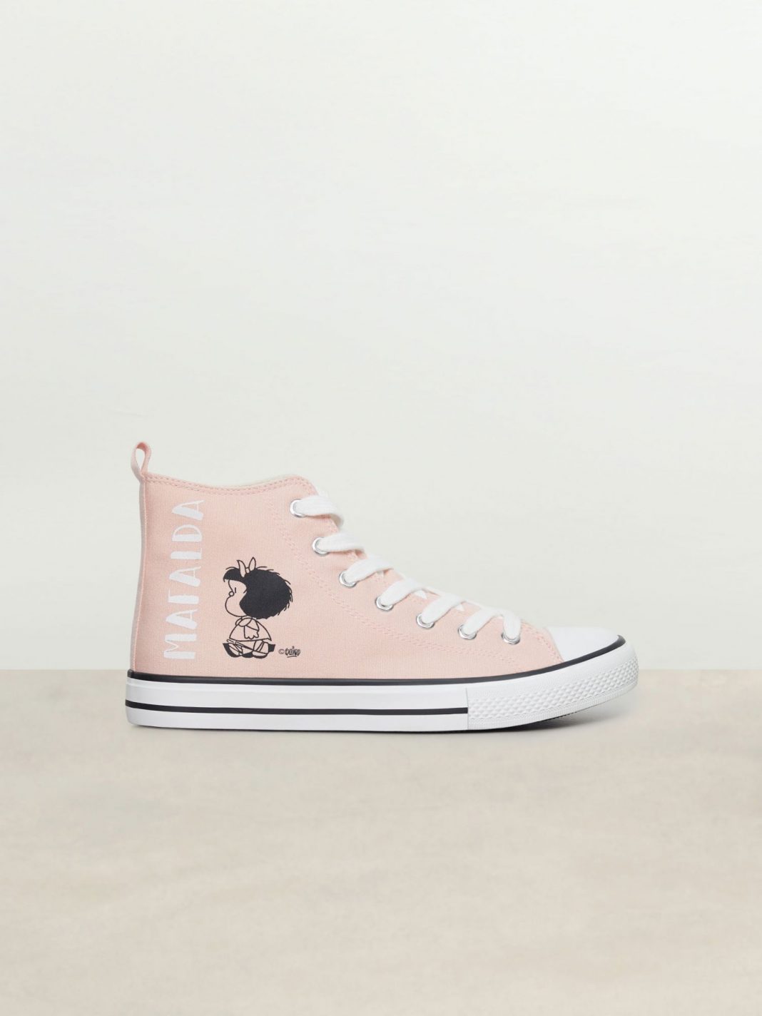 Mafalda, la caricatura famosa de Kino, es de personalidad inquieta, rebelde, atrevia y pinceladas de sabiduría inocente. Es un personaje icónico del que todos hemos aprendido una lección muy valiosa. Si te encanta coger un libro y leerlo al aire libre, no olvides usar estas zapatilla en homenaje a Mafalda que resaltan tu estilo y personalidad intelectual mientras caminas por las calles de tu ciudad.