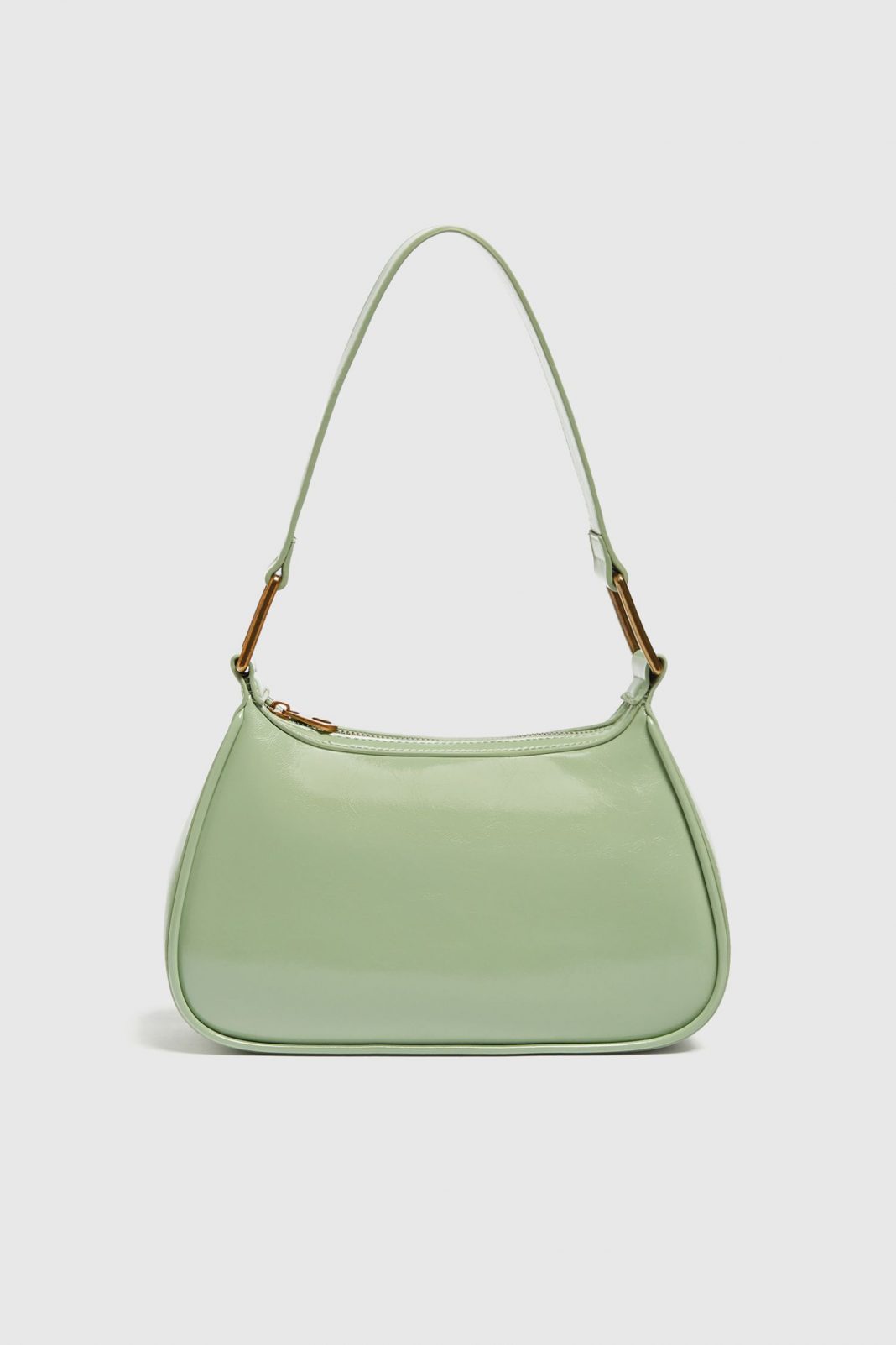 Disponible en varios colores, es un modelo de hombro con asa corta y con efecto charol. El cierre se hace mediante cremallera y tiene la particularidad de que solo puedes hacerte con él en la tienda online de Pull&Bear.