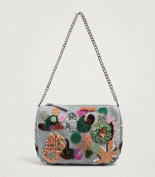 Otra excelente opción a tener en cuenta es este magnífico bolso de fiesta con cuentas de muchos colores en color gris y que ahora tiene un gran descuento por tiempo limitado en el gigante de la distribución.