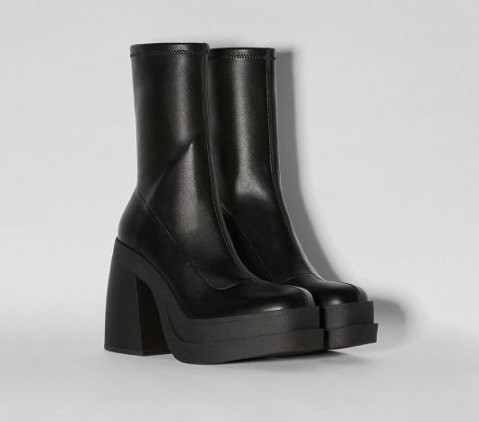 Hay una disyuntiva que se ha generado con la tendencia de las cañas hasta las rodillas y es la siguiente: ¿Hasta qué punto nos podemos poner ese tipo de botas para ir a la oficina o para salir a tomar algo? Es evidente que con el diseño tan agresivo y marcado que tienen son difíciles de combinar, por ello tenemos una alternativa igual de bonita, los botines tacón plataforma ajustados de Bershka que cuestan 35,99 euros. El calzado tiene una caña por encima del tobillo, una punta redonda y un tacón de 12 centímetros.