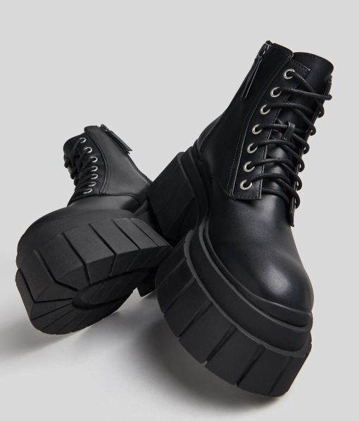 Para terminar la lista de las botas más modernas y que serán tendencia de la colección de otoño de Bershka, tenemos estos botines acordonados plataforma rayada que puedes comprar en su tienda online o en sus establecimientos por tan sólo 39,99 euros. Una joya de zapato, la combinación perfecta entre la bota de la vida, con una plataforma que sienta genial y que nos regala unos centímetros de más. Si tuviéramos que destacar algo de la pieza, sería su plataforma con tacón del mismo color que la bota, además de su cierre de cordones y su caña que llega al tobillo.