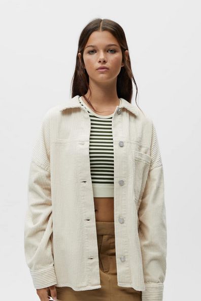 Da igual el tiempo que pase, que las sobrecamisasa de pana nunca van a dejar de llevarse. En Pull&Bear tienen varias de ellas a la venta, pero a nosotros nos ha gustado mucho esta que puedes ver en la imagen. Tiene un color blanco que pega con todo. Su precio es de tan solo 25’99 euros.