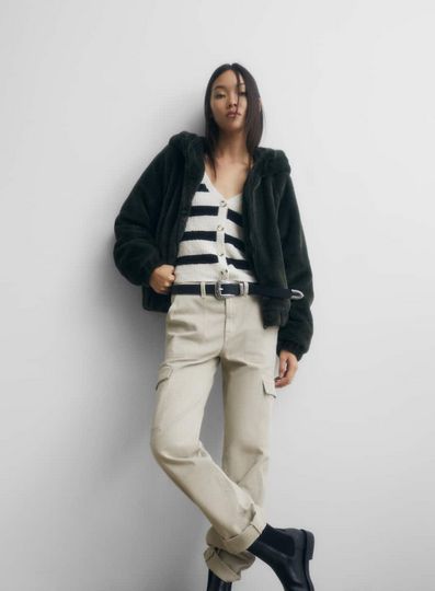 Si buscas una chaqueta de pelo que sea bonita, elegante, cómoda y económica, te recomendamos que te pases por cualquiera de las tiendas que Pull&Bear tiene repartidas a lo largo del país. Y todo porque en cualquiera de ellas vas a poder encontrar esta que justo cumple con estas características. Su precio es de solo 29’99 euros.