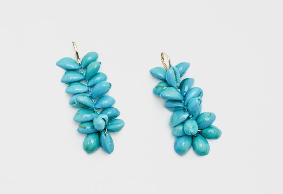 Por último, no queremos dejar de mostrarte estos pendientes de aros con conchas colgantes en forma de cascada. Son en un lindo color turquesa, con un estilo muy mediterráneo. Cuenta con cierre africano. Están elaborados con 90% concha, 5% latón, 3% poliéster y 2% hierro. Los consigues en Pull&Bear por 7,99 euros.