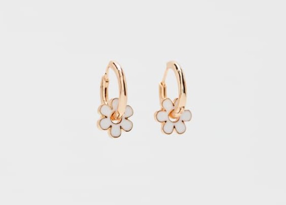 Estos son unos pendientes metalizados de mini aro con detalle de una flor blanca. Son una opción muy elegante para el día a día. Cuenta con cierre africano. Están elaborados con 60% latón, 20% zinc y 20% resina epoxi. Los consigues en Pull&Bear a 4,99 euros. A continuación te mostramos unos pendientes aro flores secas. Están elaborados con 90% resina y 10% latón.
