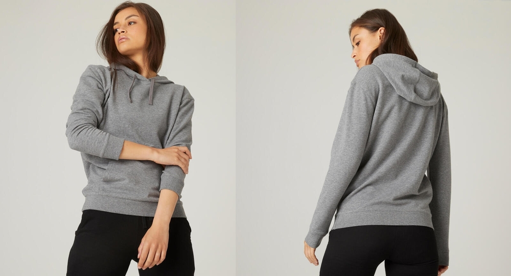 Disponible en varias tallas y en color negro y gris para elegir. Esta sudadera deportiva para mujer con capucha de la marca Domyos para fitness. Su precio es de tan solo 14.99€.