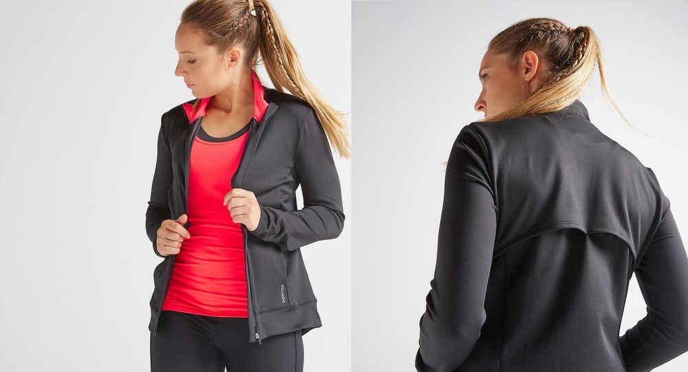 Esta otra prenda solo está disponible en color negro, pero puedes elegir varias tallas. Una sudadera-chaqueta con cremallera para mujer. Ideal para hacer deporte, y de la marca blanca Domyos. Solo cuesta 16,99€.