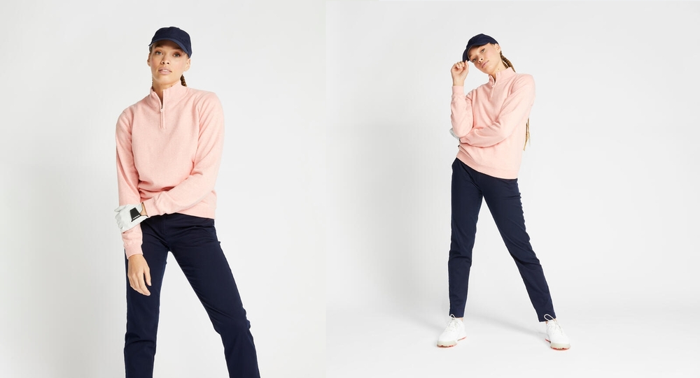 Inesis también vende este jersey cortaviento de golf para mujer. Una prenda por 39,99€ disponible en varias tallas y con la posibilidad de llevártela en el color que más te guste: rosa porcelana como el de la imagen, azul asfalto, gris acero, y beige.