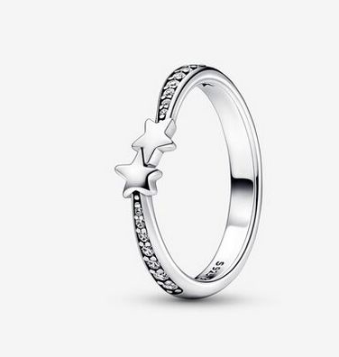 Nos encanta este anillo que hemos visto en el catálogo de Pandora. Y todo porque tiene un diseño en el que destaca un motivo de brillante con dos bonitas estrellas que darán mucha fuerza y personalidad a cualquiera que se lo ponga. Además sale muy bien de precio, ya que tan solo cuesta 39 euros.