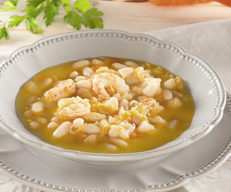 El frío llama a nuestra puerta, y por muy buenas que estén las ensaladas, ahora lo que apetece son los platos de cuchara que nos templen el cuerpo, como la receta de alubias blancas con gambas que te traemos hoy.
