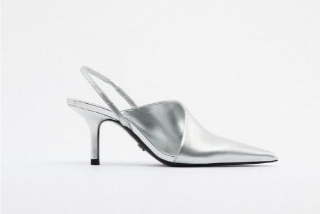 Si tuviéramos que decir un tipo de calzado que siempre triunfa, diríamos sin lugar a dudas los tacones. Y es que hay muchas adeptas a este modelo de calzado, hasta el punto de que almacenan y coleccionan tacones de manera obsesiva. Pues para ampliar la colección, tenemos esta zapatos destalonado asimétrico metalizado piel de Zara que puedes comprar por tan 69,95 euros. Lo más llamativo de este calzado es su diseño que tiene toda la pinta de ser muy cómodo, además de su color plateado y su tacón de tres centímetros.