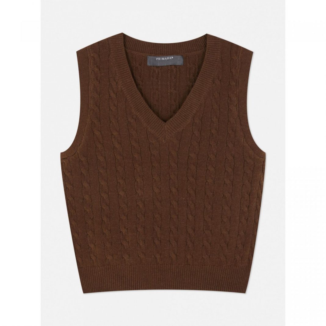Con cuello de pico y diseño de ochos, su color marrón consigue que combinarlo te resulte muy fácil, porque queda genial con una camisa o un jersey de color blanco.