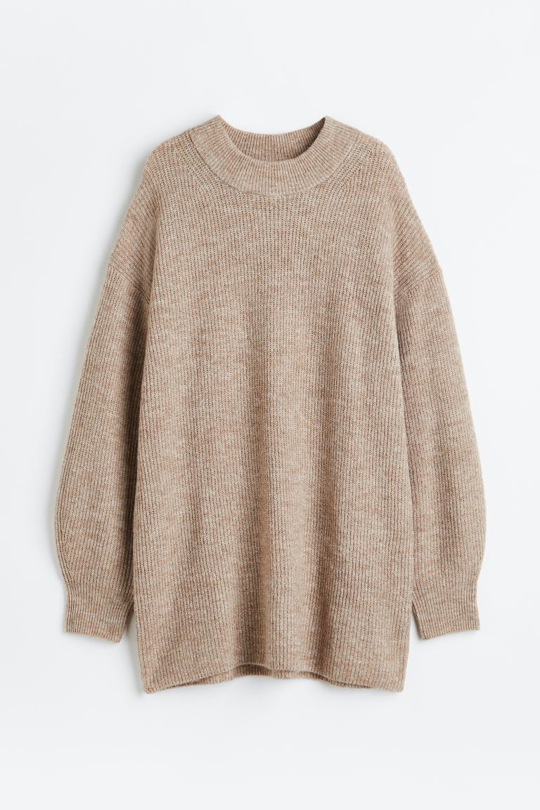 Los vestidos de punto son otro clásico que nunca pasa de moda. Esta propuesta de H&M consiste en un vestido corto con cuello redondo, con un diseño en forma de jersey. El corte es relajado, holgado y suelto, con los hombros caídos. Tiene un remate de canalé en el cuello, los puños y el bajo. Ideal si lo que buscas es un look cómodo a la vez que estiloso. Combínalo con tus mejores botas y lúcelo en color beige jaspeado o en negro. Es de poliéster reciclado con un 4% de lana para ir más abrigada. Lo puedes conseguir por 29,99 €.
