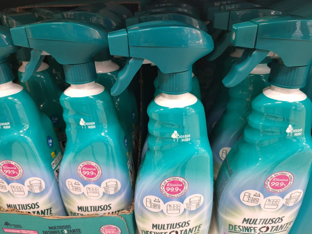 Un buen ejemplo es el desinfectante multiusos de Mercadona. Lo puedes usar en la cocina, en el cuarto de baño, y hasta en los muebles, y su formato en spray hace que su aplicación sea muy sencilla.