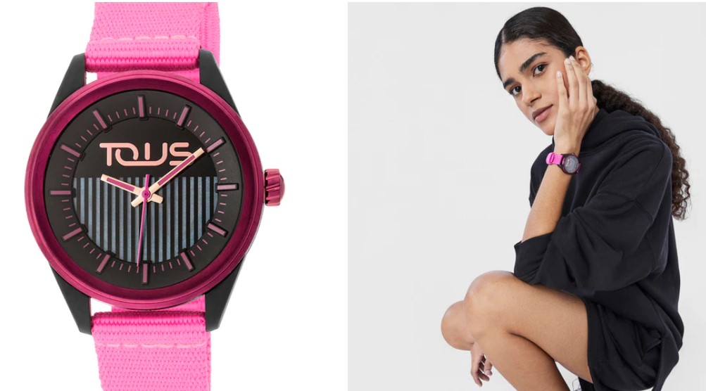 El nuevo Tous Vibrant Sun es el primer reloj eco-friendly de la marca, fabricado con nylon de redes de pesca y plástico reciclado. Con él, podrás disfrutar cada minuto de la manera más sostenible. Cuenta con carga solar y caja de nylon endurecido de color fucsia. La correa es de poliéster reciclado, fabricada a partir de botellas de plástico. No requiere de ninguna pila ni batería para funcionar; con una carga completa, el reloj es capaz de funcionar hasta 4 meses. Está disponible en varios colores y el precio de venta es de 149 euros.