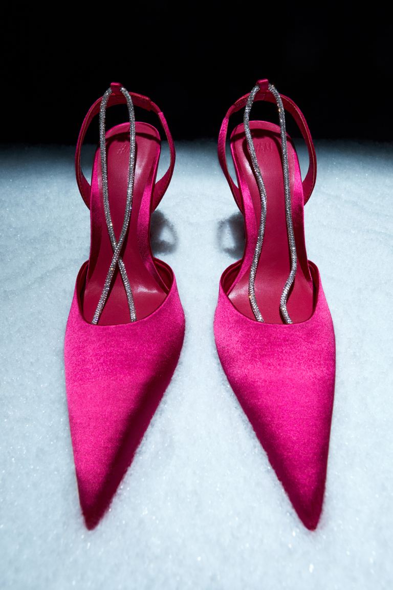 Si ya estás con la cabeza puesta en lo que te vas a poner en los eventos navideños, estos salones con tacón de 10 cm pueden ser una muy buena alternativa. La cadena extraíble de strass les confiere un aire muy festivo.